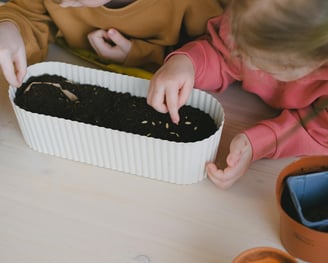 Preparation: Transform your outdoor space into a sensory wonderland by involving your children in soil preparation. This could be as simple as clearing the top layer of grass and loosening the soil with toy excavators. While enriching the soil with compost or purchased soil can enhance growth, it's not always necessary. If you do add soil, my personal recommendation is Benson's, a choice first recommended by a knowledgeable garden store employee ages ago when we started our journey. Preparation can be spread out over several days, making it manageable and enjoyable for everyone involved (as well as a way to make it to naptime every day!)